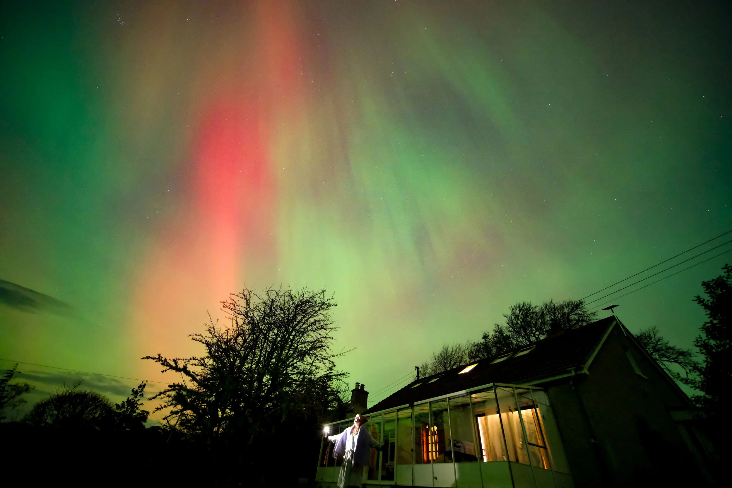 Standing outside our new house, watching the aurora borealis